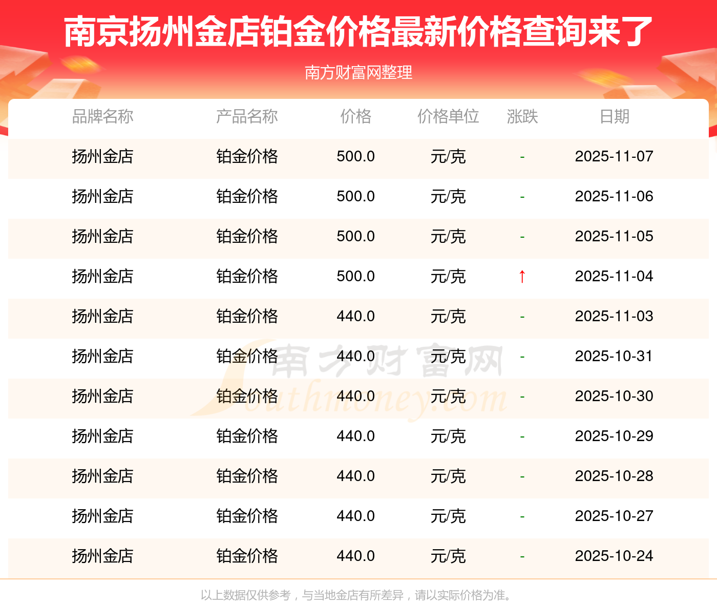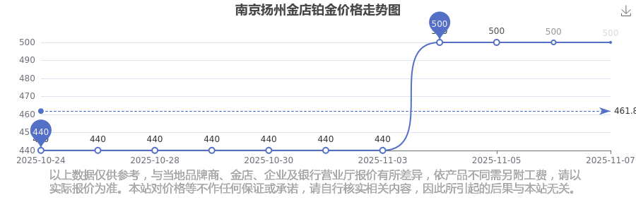2025年11月9日南京揚(yáng)州金店鉑金價(jià)格為500.0元/克。