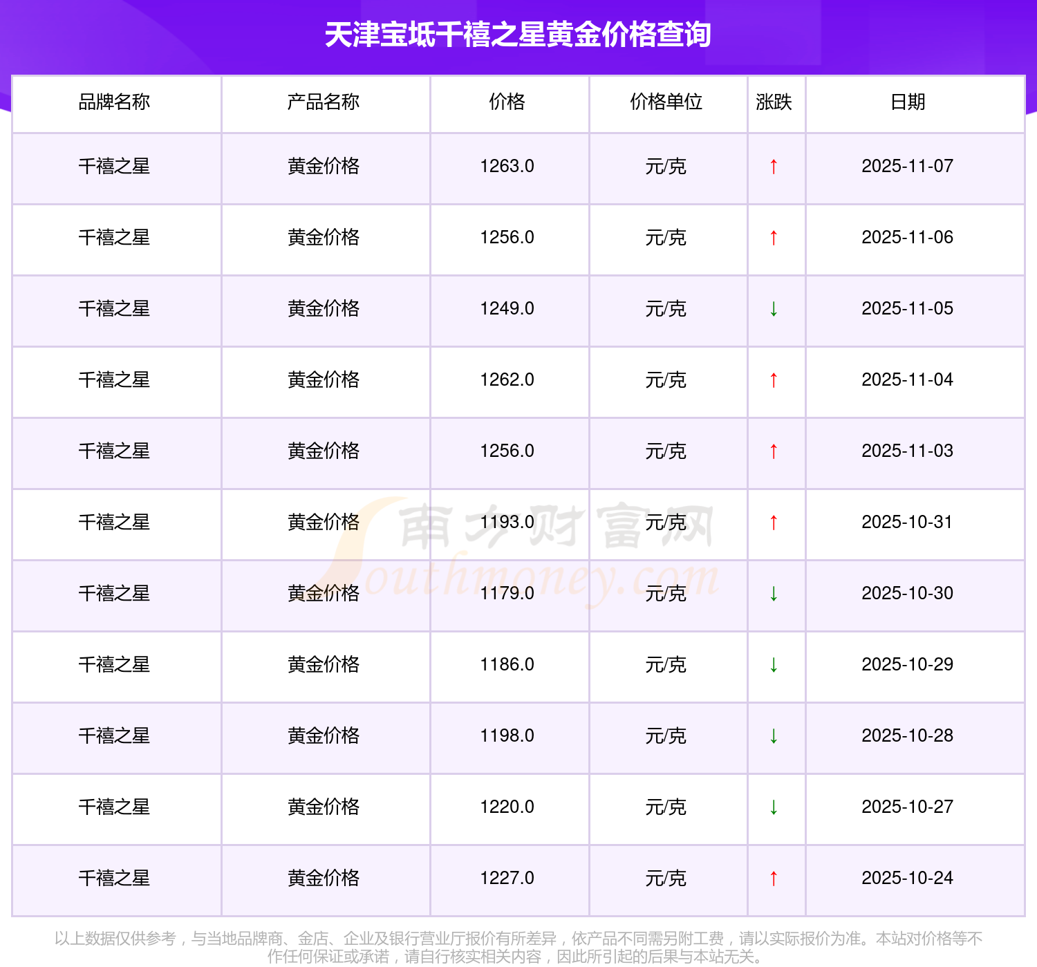 今日天津?qū)氎媲ъ屈S金價格為1263.0元/克。