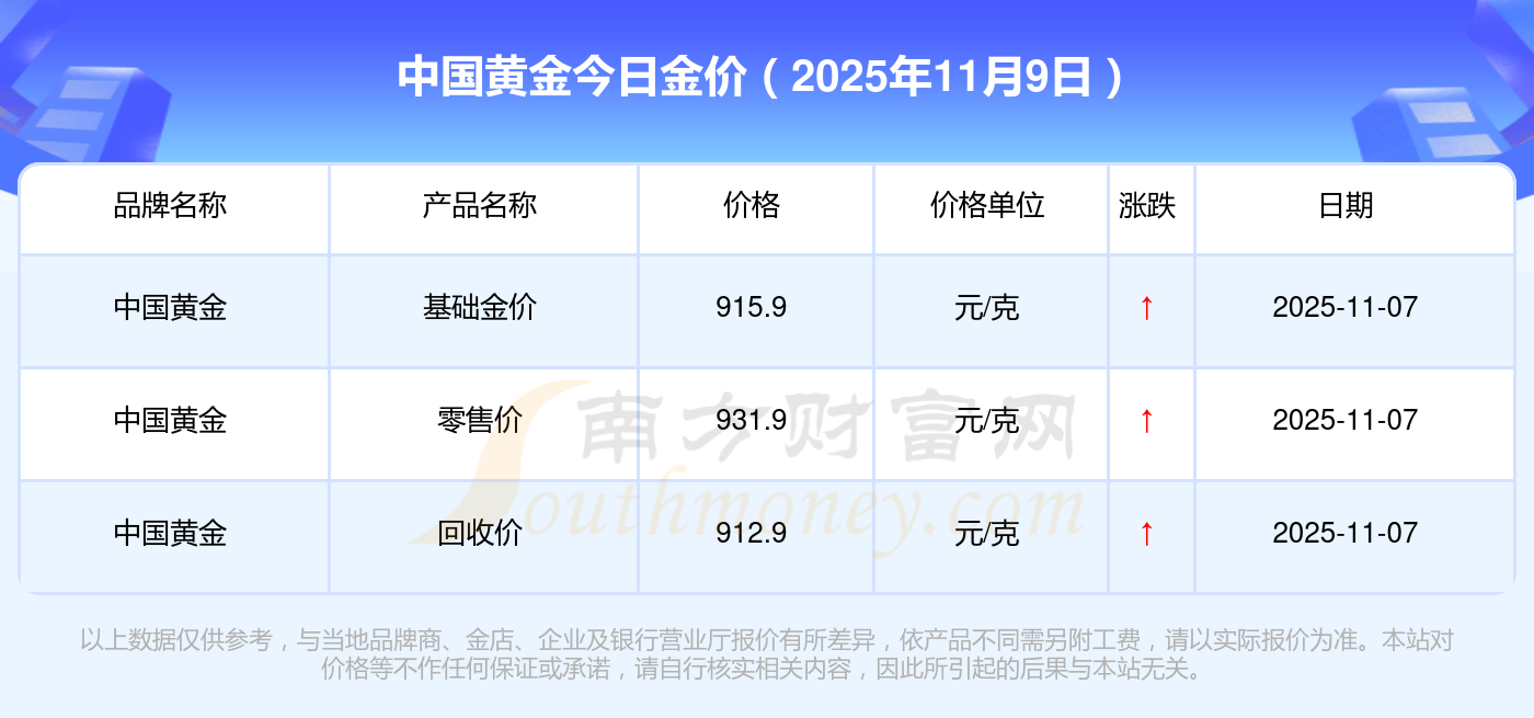2025年11月9日中國(guó)黃金金條多少錢(qián)1克 現(xiàn)在海南南沙中國(guó)黃金黃金價(jià)格查詢
