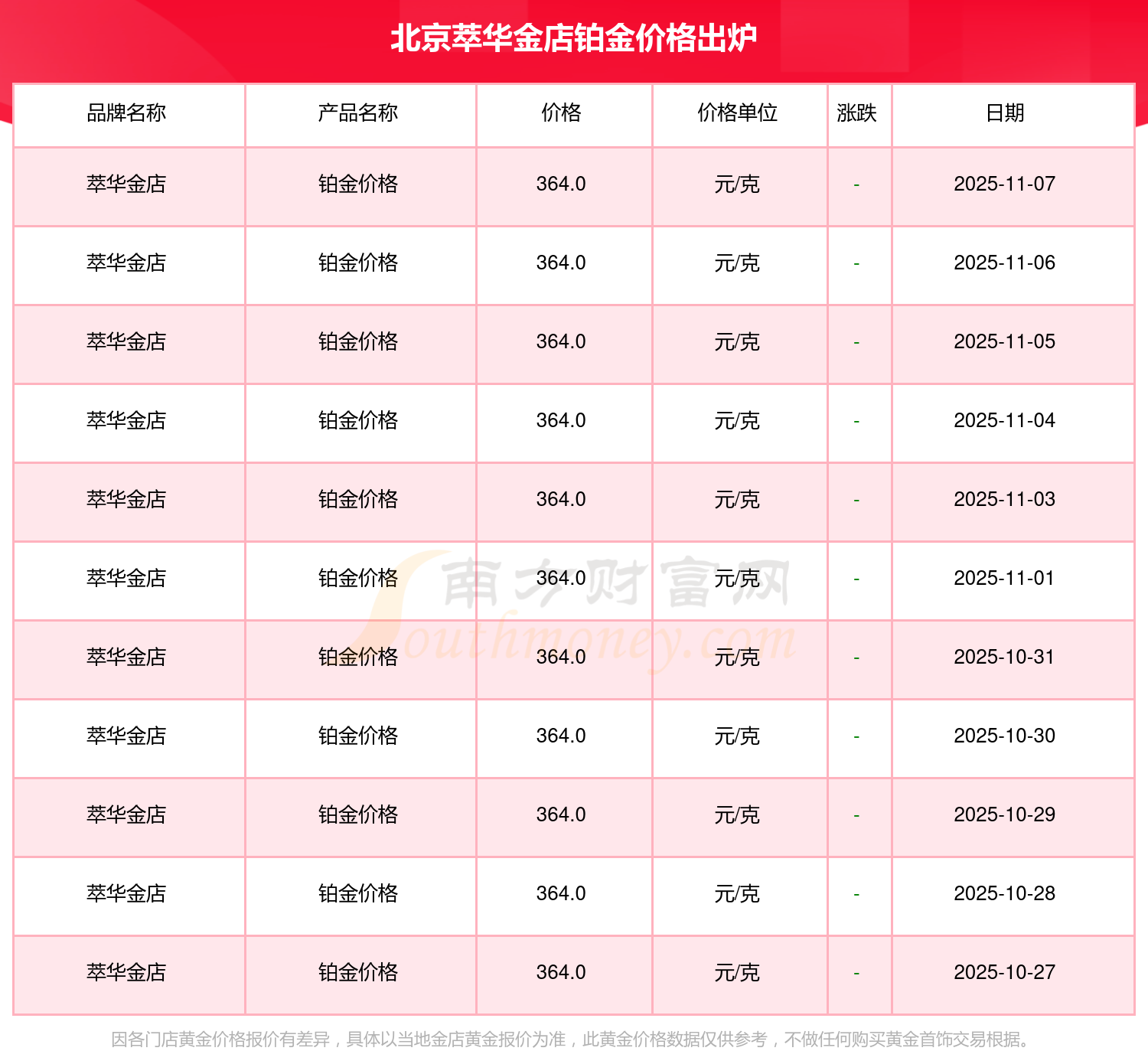 今日鉑金價格報價最高的金店是周大福,為627.0元/克,報價最低的金店是萃華金店,為364.0元/克。今日鉑金價格高低差為263元/克。