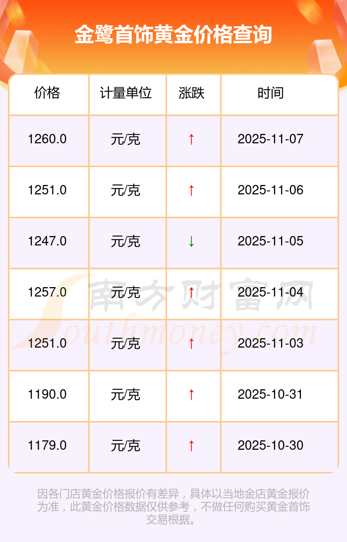 今日金鷺首飾黃金價(jià)格最新是1260.0元/克。