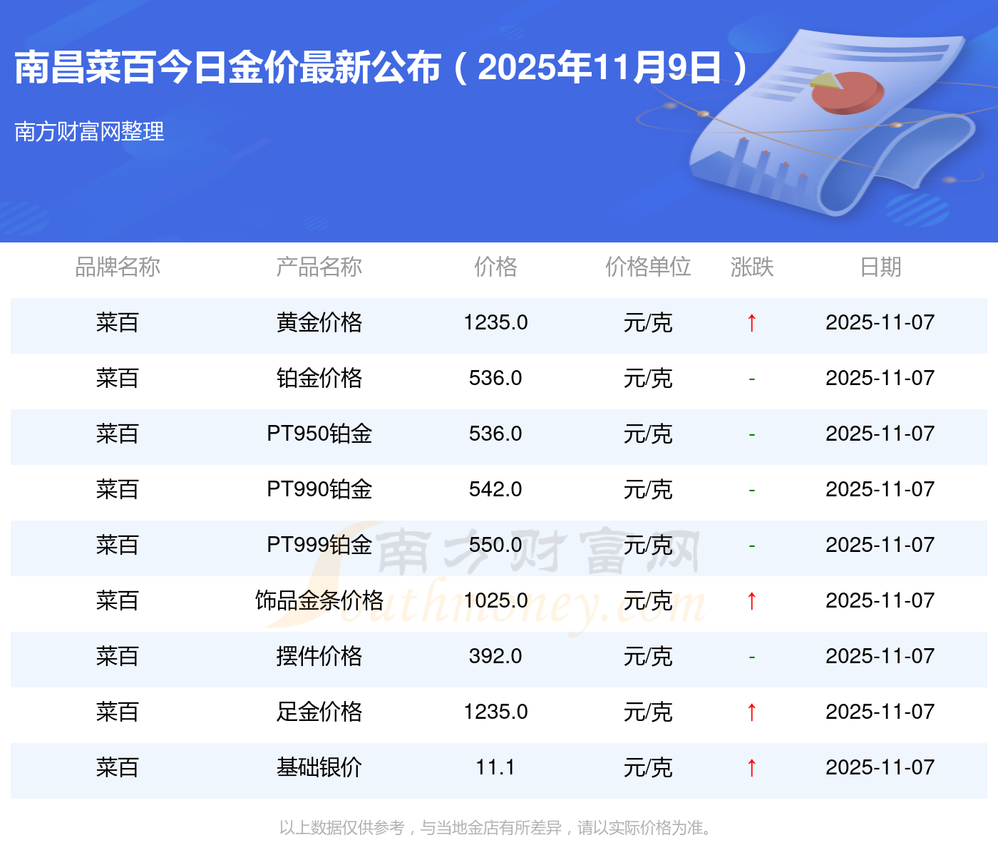 以上數(shù)據(jù)僅供參考,與當(dāng)?shù)亟鸬暧兴町,?qǐng)以實(shí)際價(jià)格為準(zhǔn)。