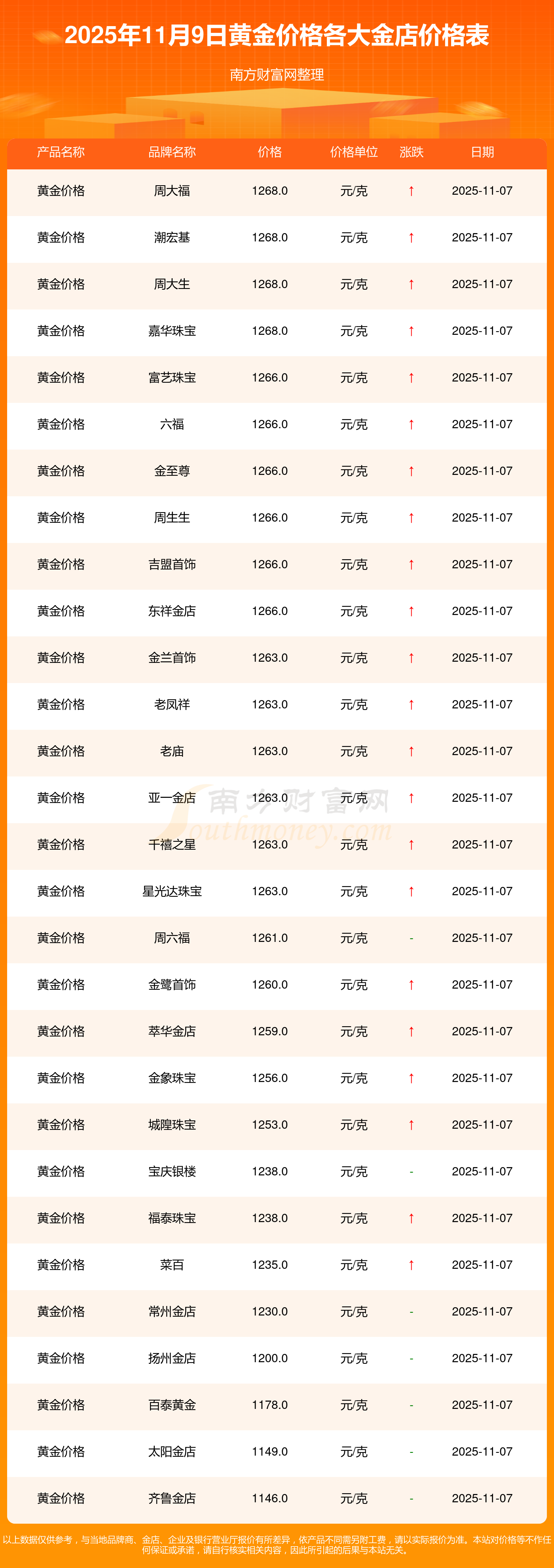 以上數(shù)據(jù)僅供參考,與當(dāng)?shù)亟鸬暧兴町悾?qǐng)以實(shí)際價(jià)格為準(zhǔn)。