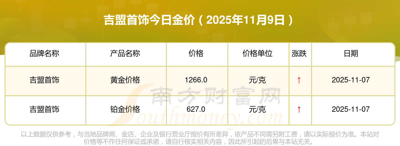 2025年11月9日,寶泉錢幣、金蘭首飾、金蘭首飾、謝瑞麟、謝瑞麟、謝瑞麟、謝瑞麟、謝瑞麟、金銀街、金銀街、金銀街等各大金店品牌黃金價(jià)格今日價(jià)格如下:寶泉錢幣11.4元/克、金蘭首飾1263.0元/克、金蘭首飾560.0元/克、謝瑞麟1202.0元/克、謝瑞麟1268.0元/克、謝瑞麟44260.0、謝瑞麟13080.0、謝瑞麟39960.0、金銀街1243.0元/克、金銀街1258.0元/克、金銀街1248.0元/克。