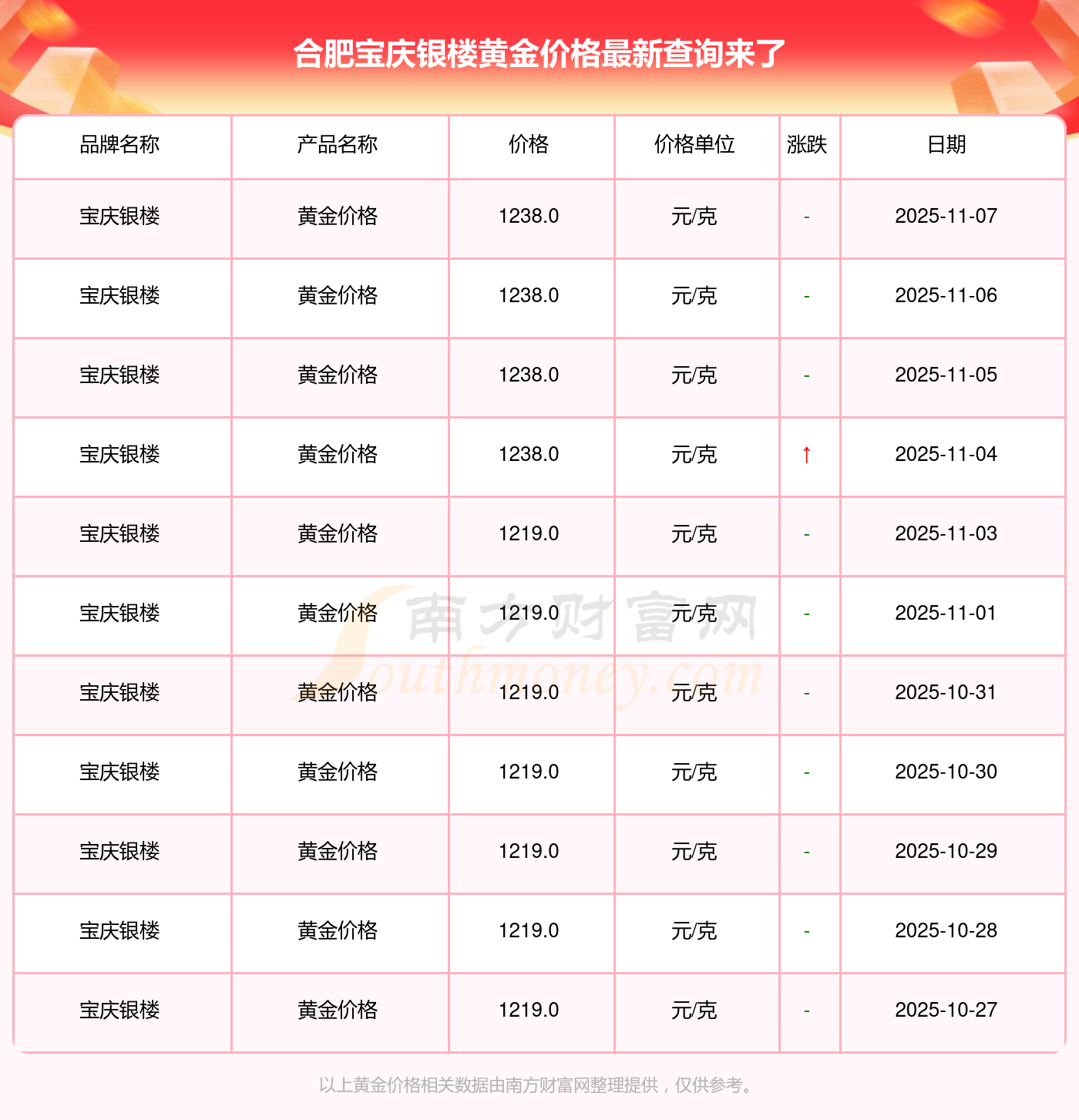 以上數(shù)據(jù)僅供參考,與當(dāng)?shù)亟鸬暧兴町,?qǐng)以實(shí)際價(jià)格為準(zhǔn)。