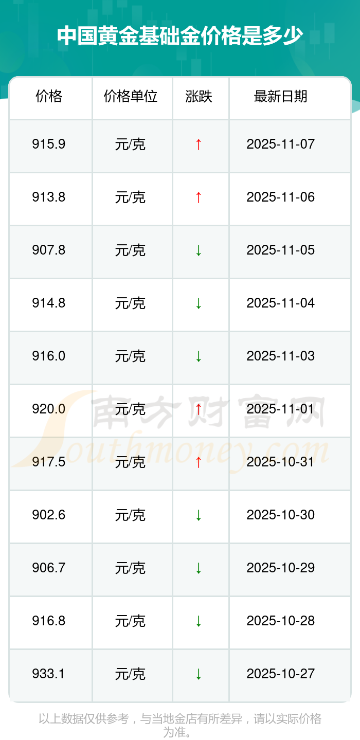 中國黃金 基礎金價于今日的最新掛牌價為915.9元/克。