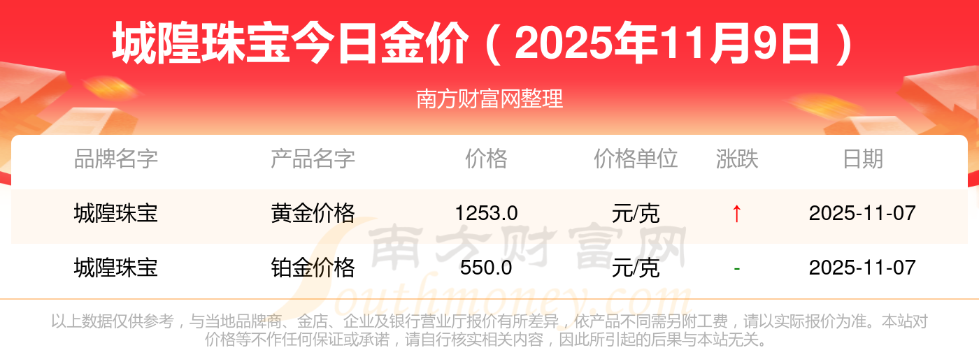 城隍珠寶今天的黃金價(jià)值幾何?詳情如下: