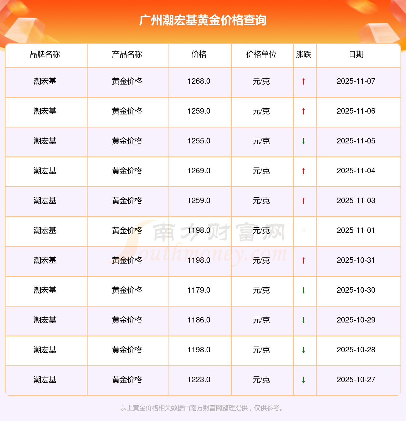 今日廣州潮宏基黃金價(jià)格公布當(dāng)下,今日的黃金一克賣多少錢今日(2025年11月9日)廣州潮宏基黃金價(jià)格為1268.0元/克。