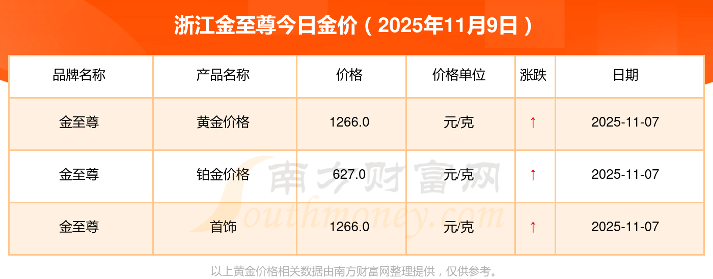 2025年11月9日浙江金至尊黃金價格表最新公布_浙江金至尊金價今日價格是多少錢,隨小編來了解一下詳情。