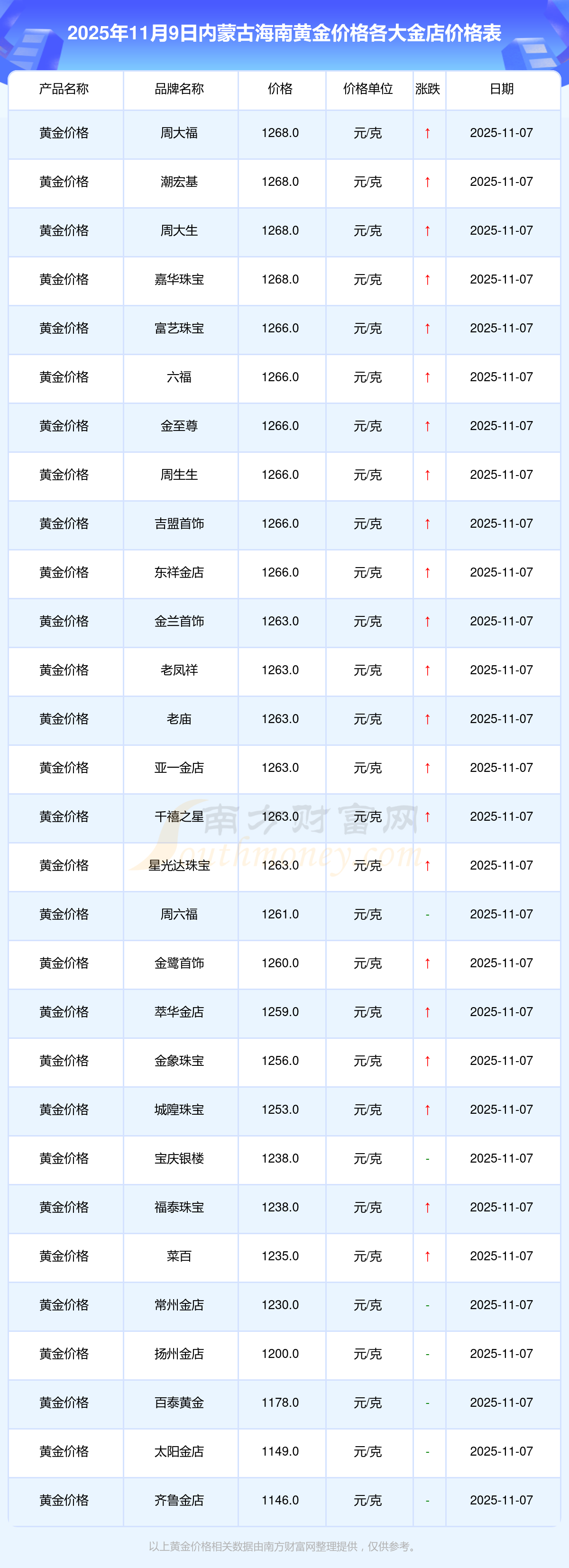 一、內(nèi)蒙古海南各金店黃金價格行情來了,黃金價格今天多少一克,內(nèi)蒙古海南各金店黃金價格表