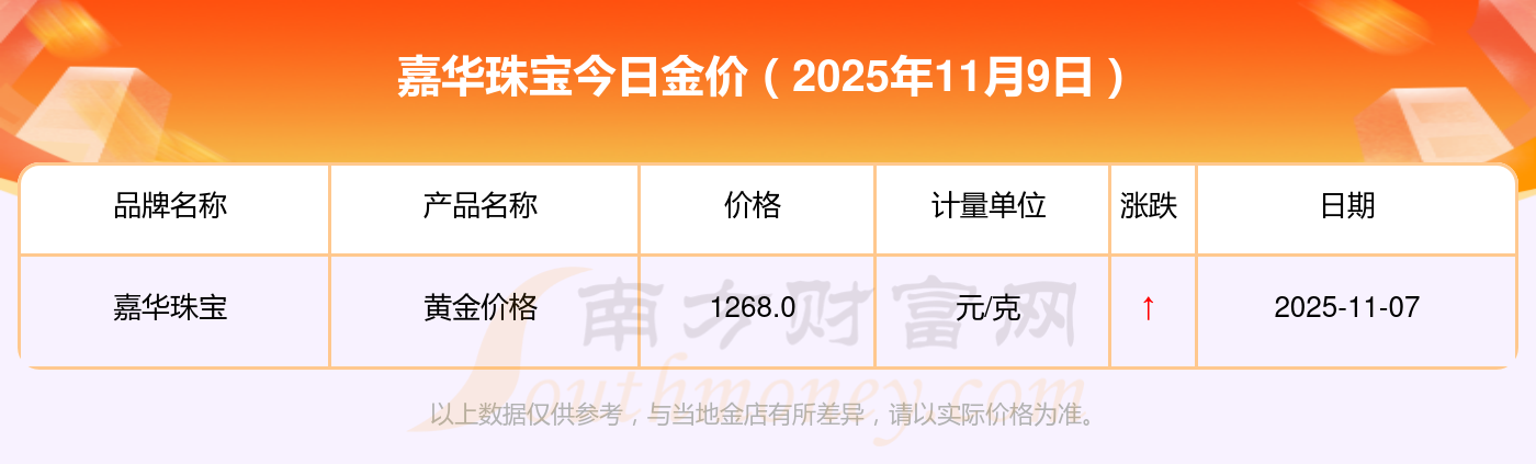 現(xiàn)在嘉華珠寶黃金價格是多少錢1克_2025年嘉華珠寶今日金價是多少錢一克,最新嘉華珠寶查詢,2025年11月9日嘉華珠寶黃金價格現(xiàn)在每克多少錢?最新嘉華珠寶黃金價格報價公布,一起來看看吧!