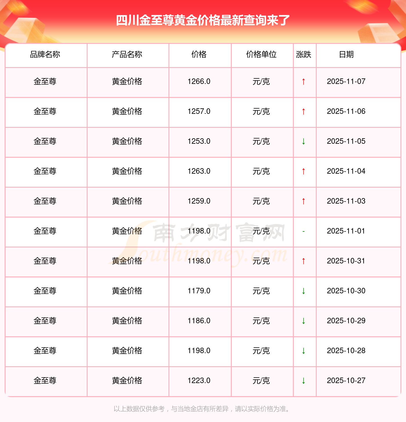2025年11月9日,四川金至尊所售黃金價(jià)格,其價(jià)格設(shè)定為 1266.0元/克。