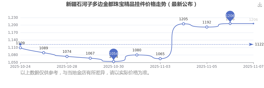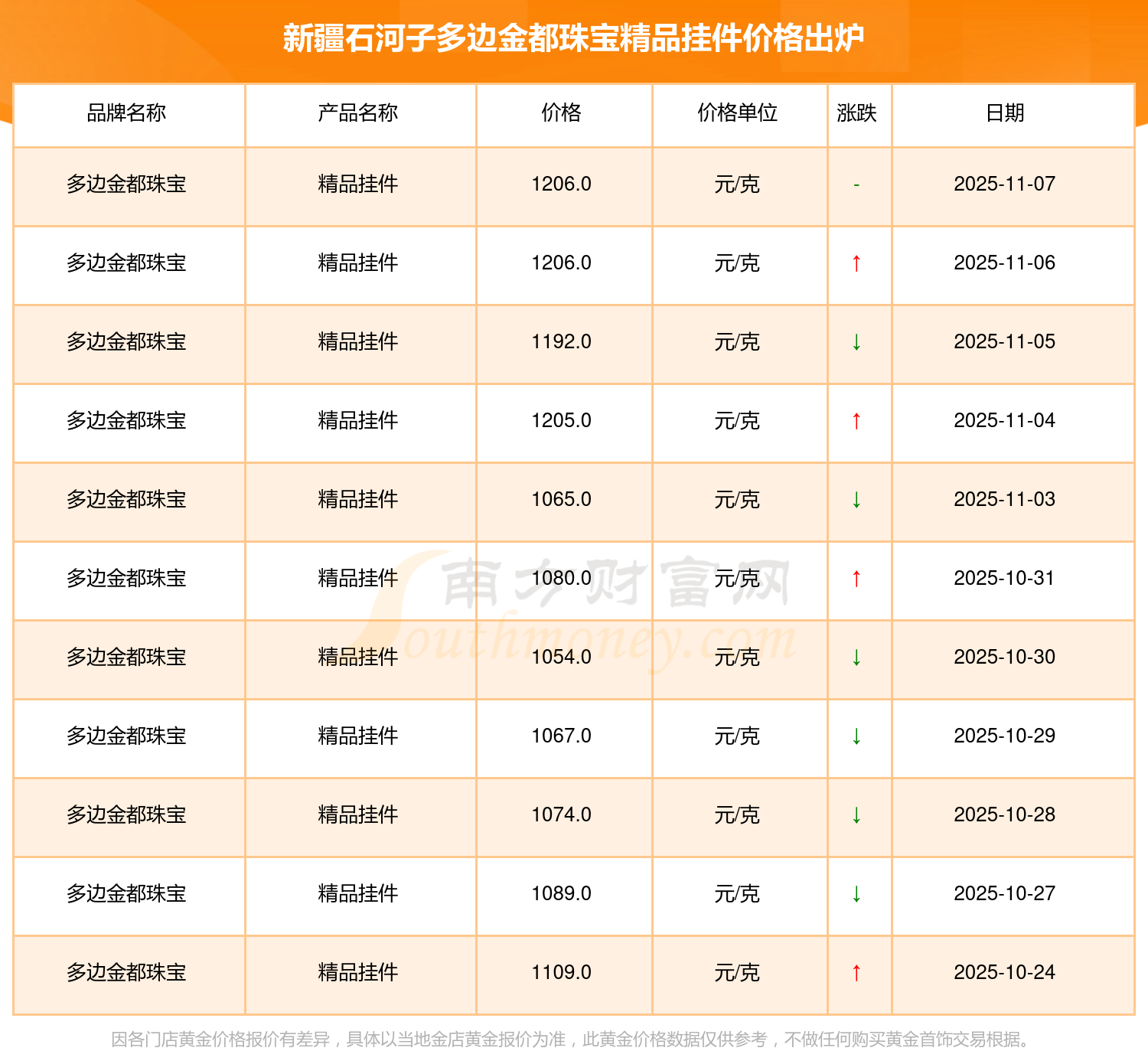 今日新疆石河子多邊金都珠寶精品掛件價格為1206.0元/克。