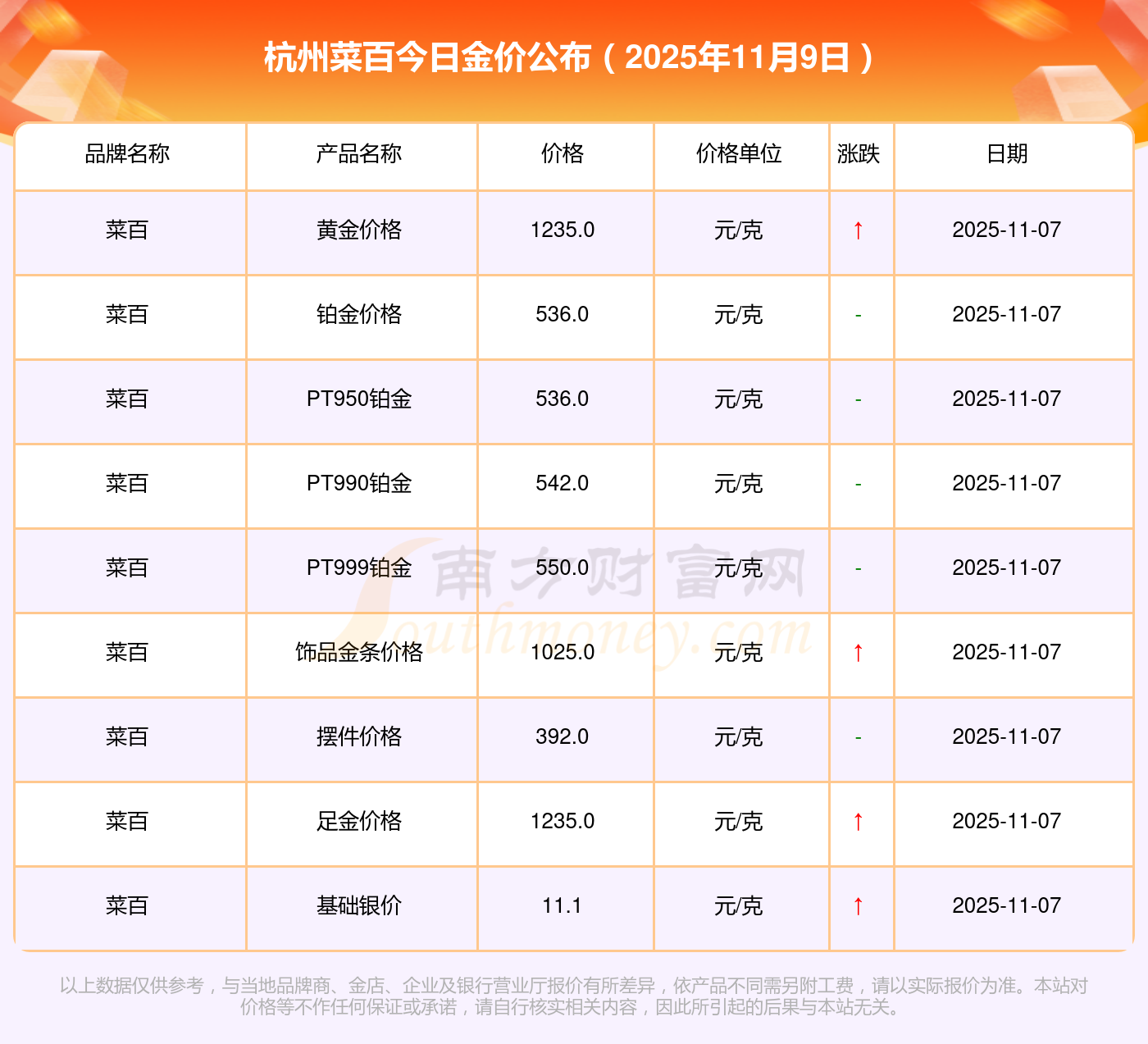 杭州菜百金價(jià)今日價(jià)格:
