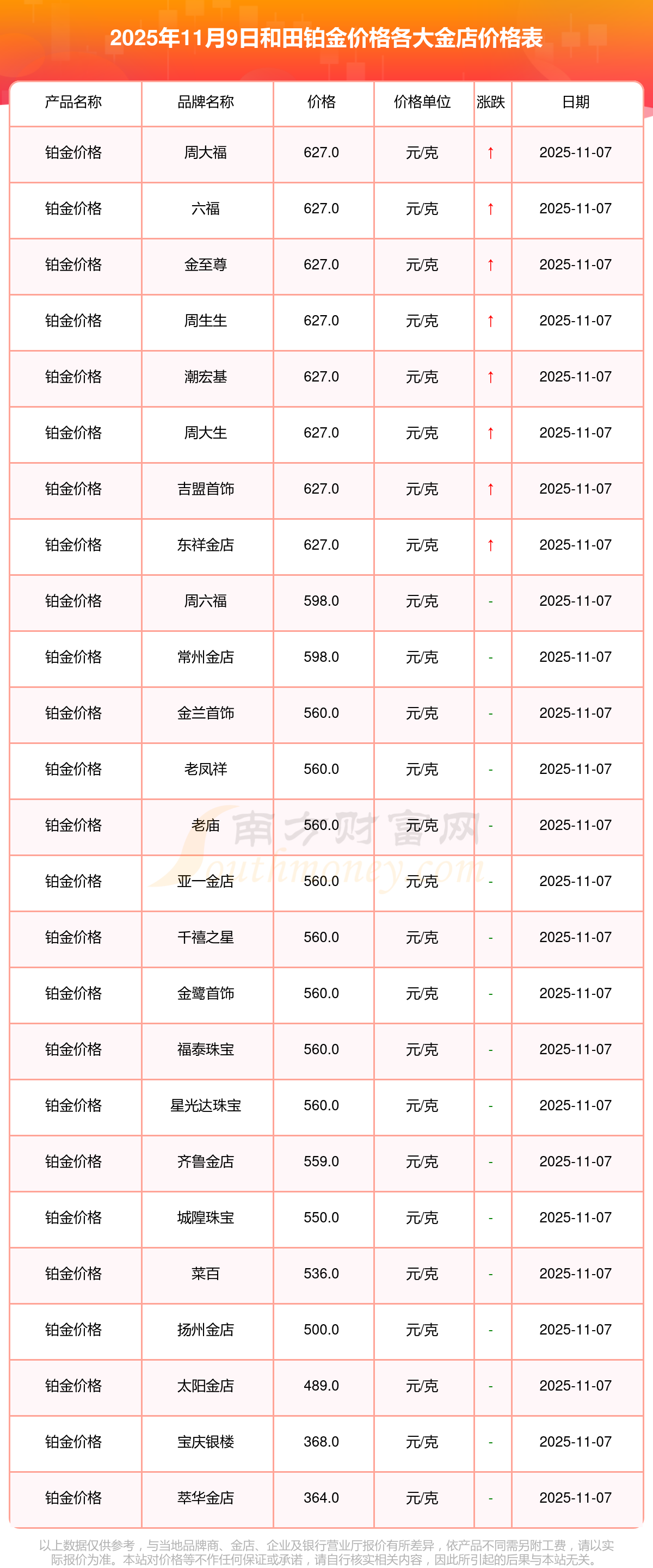 一、 和田各金店鉑金價格多少錢1克?和田各金店鉑金價格最新詳情