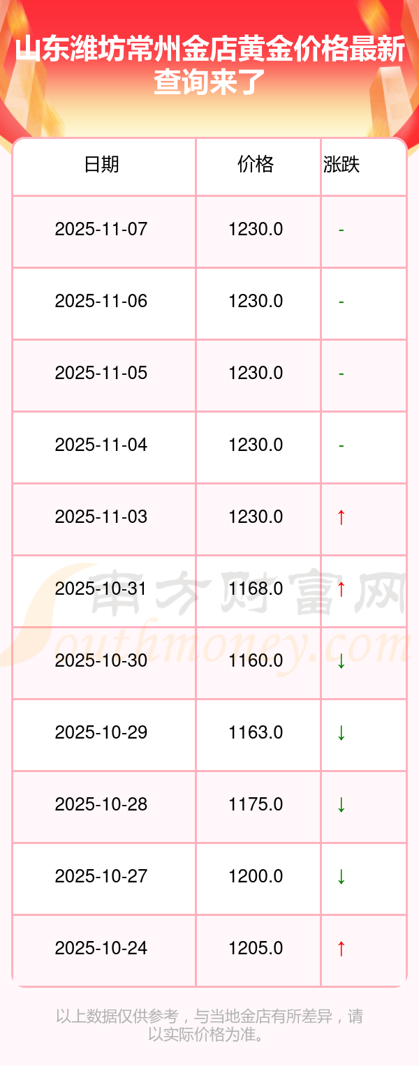 今天是2025年11月9日,寶泉錢幣、金蘭首飾、金蘭首飾、謝瑞麟、謝瑞麟、謝瑞麟、謝瑞麟、謝瑞麟、金銀街、金銀街、金銀街等各大金店品牌黃金價格最新價格如下:寶泉錢幣11.4元/克、金蘭首飾1263.0元/克、金蘭首飾560.0元/克、謝瑞麟1202.0元/克、謝瑞麟1268.0元/克、謝瑞麟44260.0、謝瑞麟13080.0、謝瑞麟39960.0、金銀街1243.0元/克、金銀街1258.0元/克、金銀街1248.0元/克。