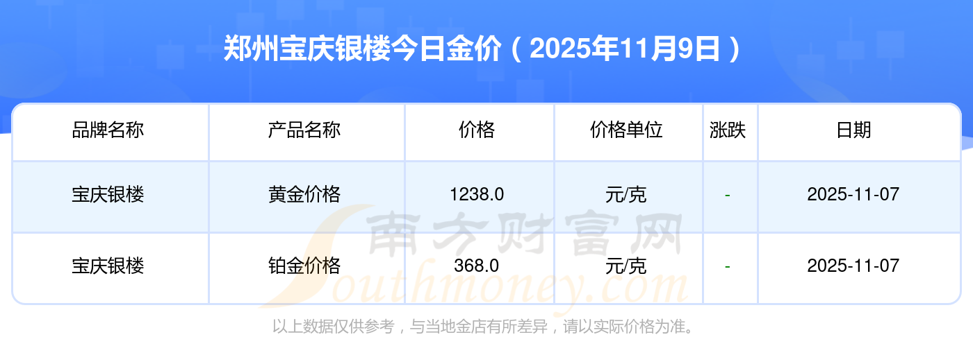 鄭州寶慶銀樓金價今日價格最新_鄭州寶慶銀樓黃金多少錢一克2025年11月9日,隨小編來了解一下詳情。