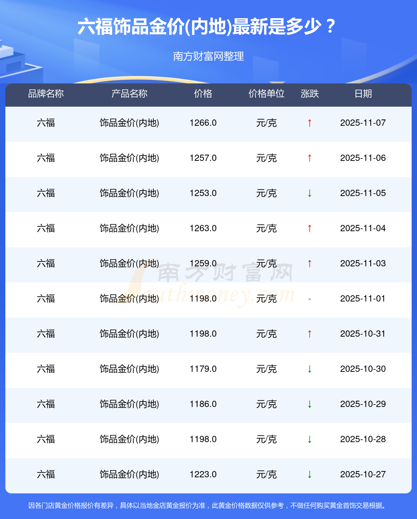 2025年11月9日六福今日飾品金價(內(nèi)地)是多少一克_2025年飾品金價(內(nèi)地)表公布,一起來看看吧!