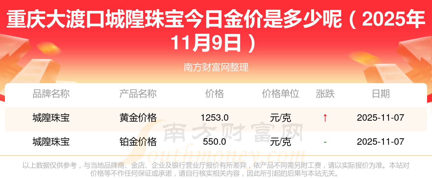 重慶大渡口城隍珠寶黃金價格表來了,現(xiàn)在重慶大渡口城隍珠寶黃金價格是多少錢1克?
