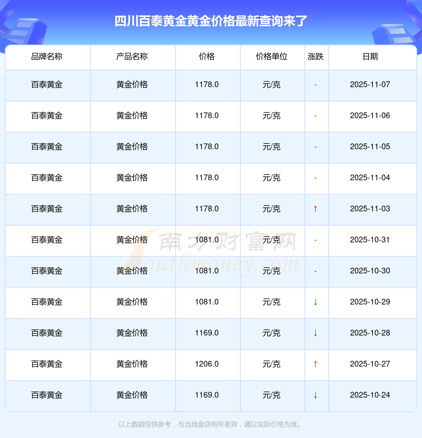 以上數(shù)據(jù)僅供參考,與當(dāng)?shù)亟鸬暧兴町悾?qǐng)以實(shí)際價(jià)格為準(zhǔn)。