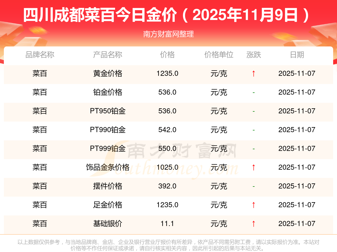 2025年11月9日菜百金條多少錢1克 現(xiàn)在四川成都菜百黃金價格查詢