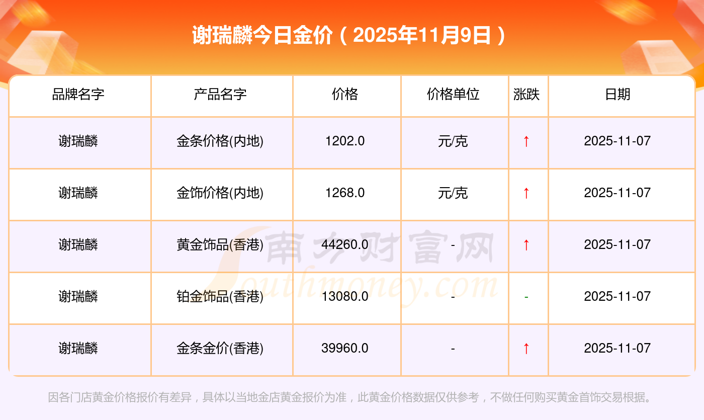 謝瑞麟今天的黃金價值幾何?詳情如下: