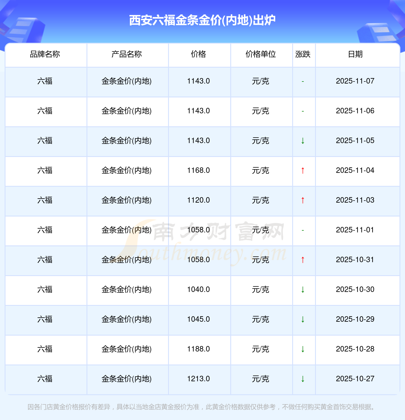 2025年11月9日,寶泉錢幣、金蘭首飾、金蘭首飾、謝瑞麟、謝瑞麟、謝瑞麟、謝瑞麟、謝瑞麟、金銀街、金銀街、金銀街等各大金店品牌金條金價(jià)(內(nèi)地)今日價(jià)格如下:寶泉錢幣11.4元/克、金蘭首飾1263.0元/克、金蘭首飾560.0元/克、謝瑞麟1202.0元/克、謝瑞麟1268.0元/克、謝瑞麟44260.0、謝瑞麟13080.0、謝瑞麟39960.0、金銀街1243.0元/克、金銀街1258.0元/克、金銀街1248.0元/克。