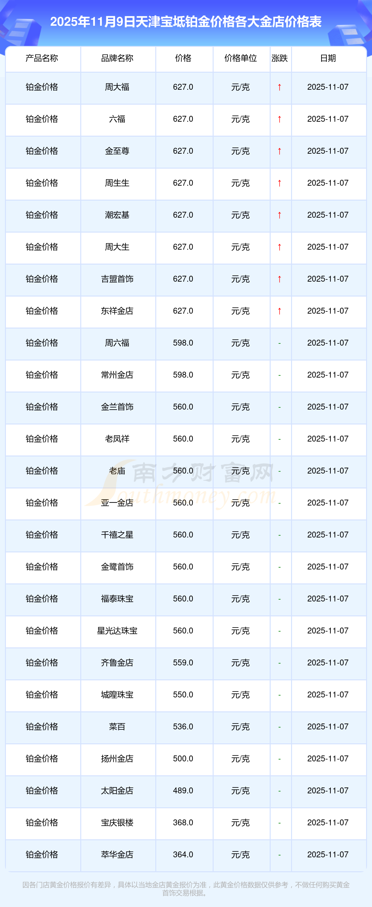 2025年11月9日天津?qū)氎娓鹘鸬赉K金價(jià)格什么價(jià)格呢?