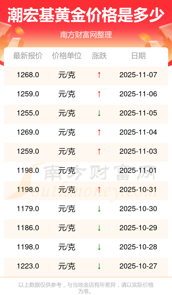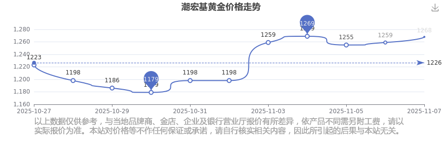 今日黃金價格查詢_現(xiàn)在金價黃金一克多少錢,黃金價格是多少錢一克?屬于優(yōu)良導(dǎo)電導(dǎo)熱材料的黃金,有良好的導(dǎo)熱特性。鑒于其化學(xué)穩(wěn)定性高、抗氧化性強,可制作高精度電子元件,因此常用于電子工業(yè)的特殊電路設(shè)計中。今日(2025年11月9日)潮宏基黃金價格:1268.0元/克。