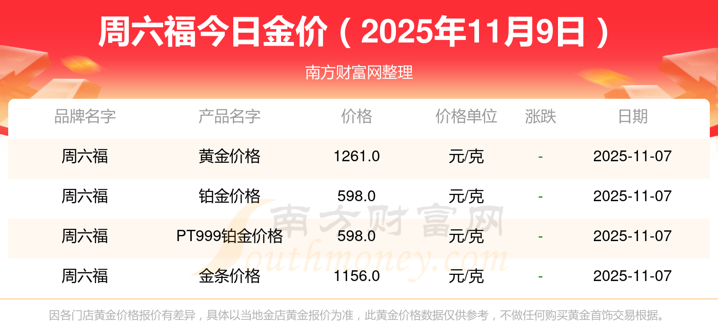 現(xiàn)在周六福價(jià)格是多少錢1克_2025年周六福今日黃金價(jià)格查詢(一克金子的市場(chǎng)價(jià)格查詢),一起來看看吧!