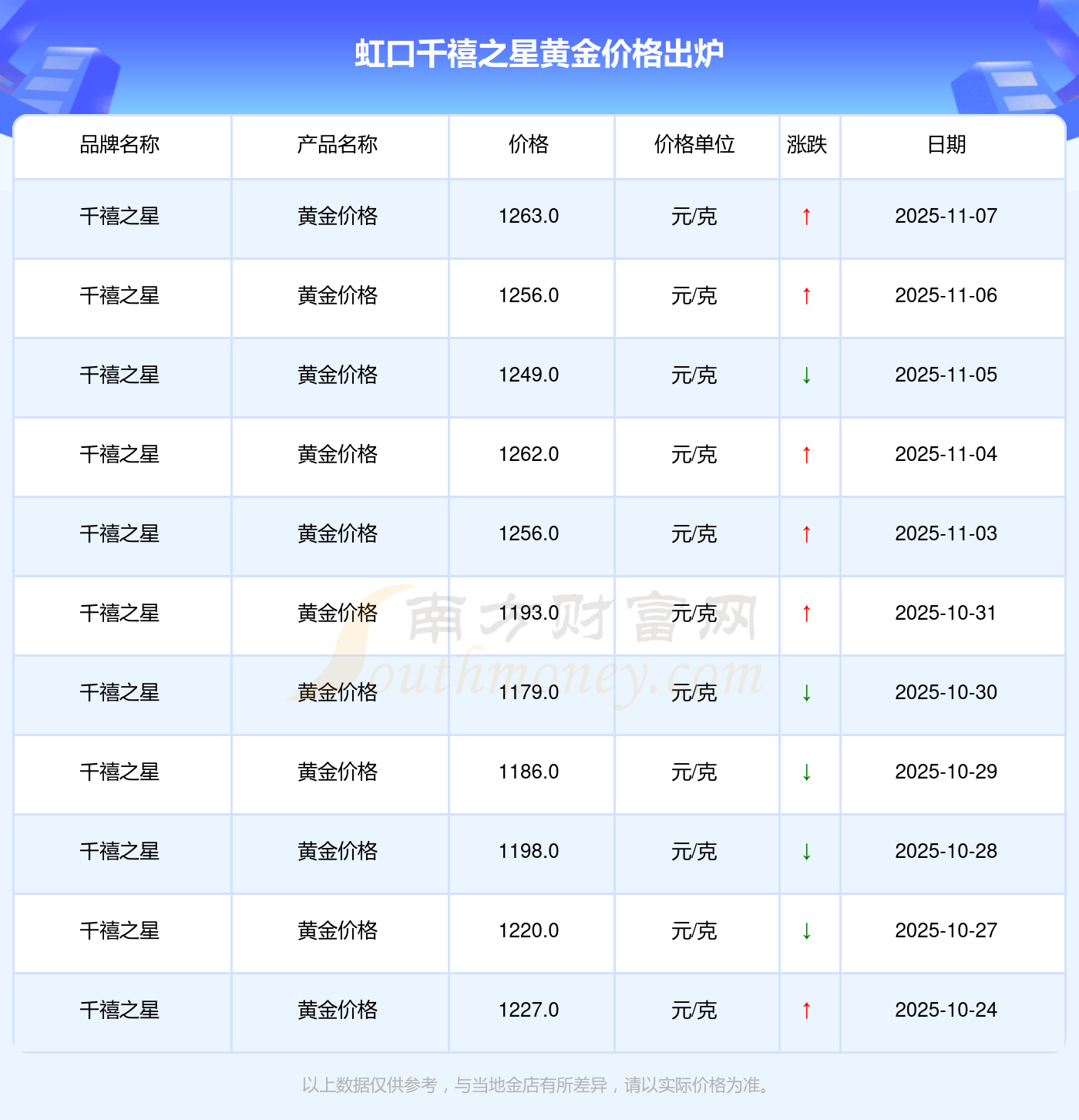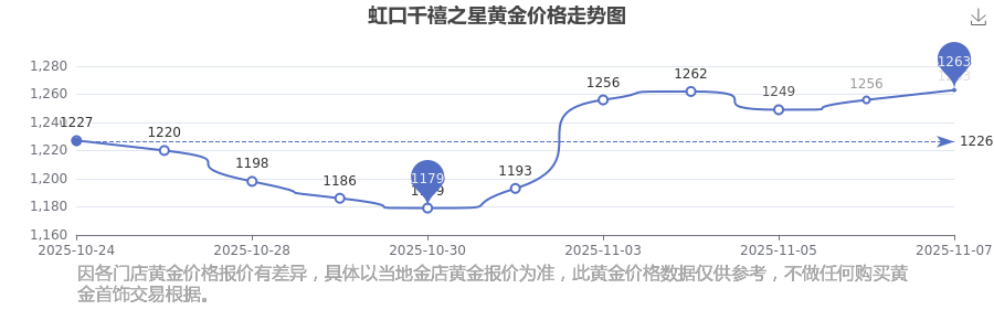 2025年11月9日虹口千禧之星黃金價格是1263.0元/克。
