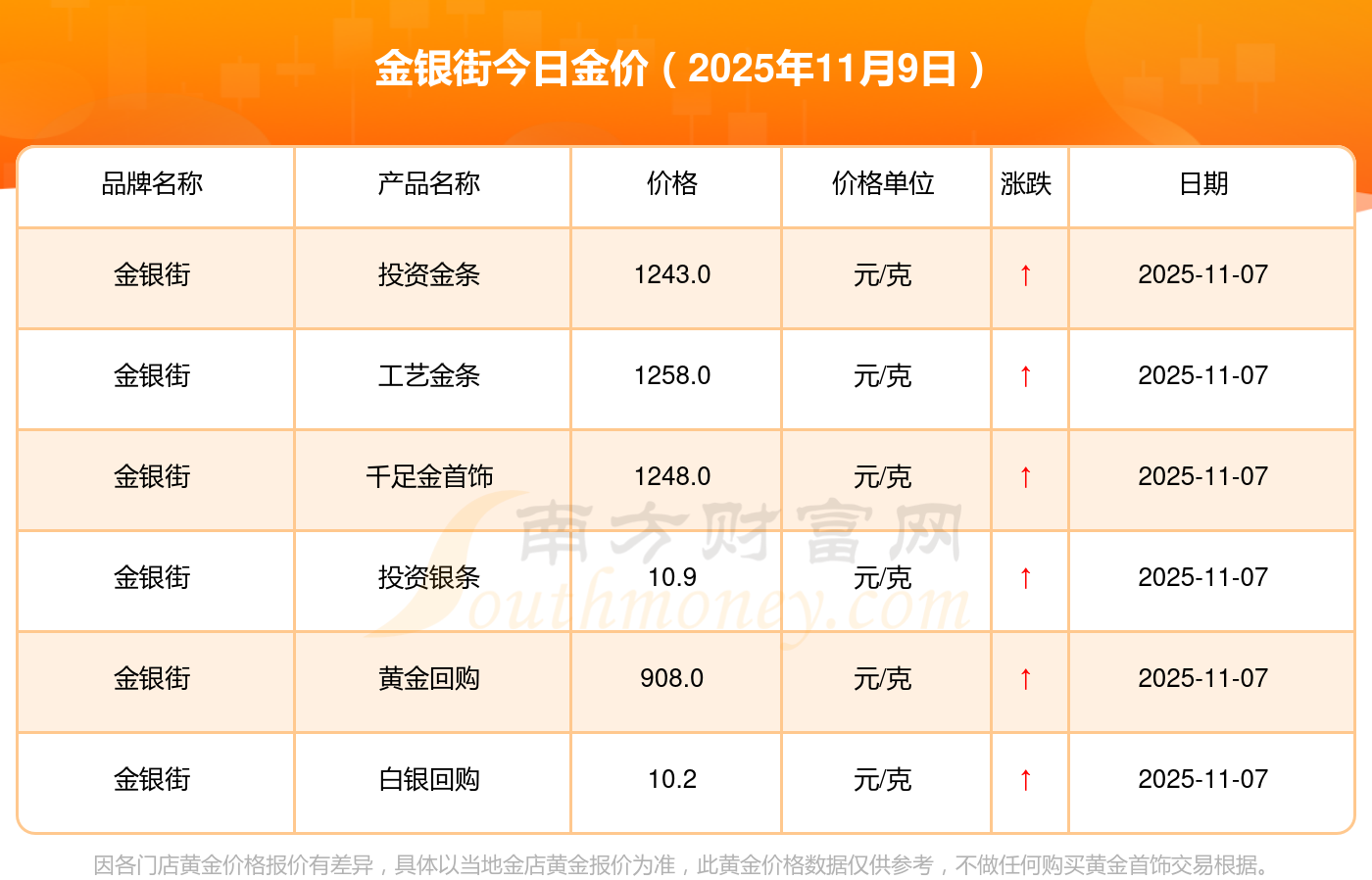 你了解金銀街金價今日價格嗎?以下是詳情數(shù)據(jù):銀條價格11.4元/克,黃金價格1263.0元/克,鉑金價格560.0元/克,金條價格(內(nèi)地)1202.0元/克,金飾價格(內(nèi)地)1268.0元/克,黃金飾品(香港)44260.0,鉑金飾品(香港)13080.0,金條金價(香港)39960.0,投資金條1243.0元/克,工藝金條1258.0元/克,千足金首飾1248.0元/克。