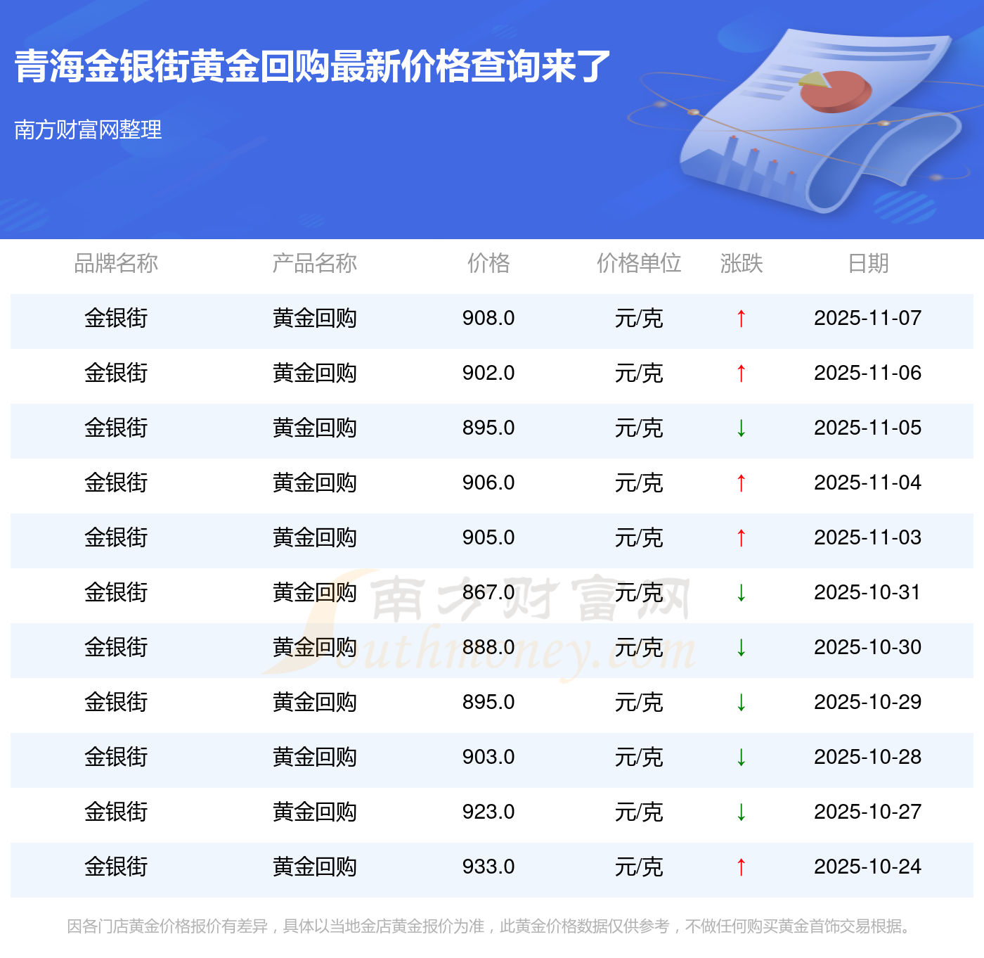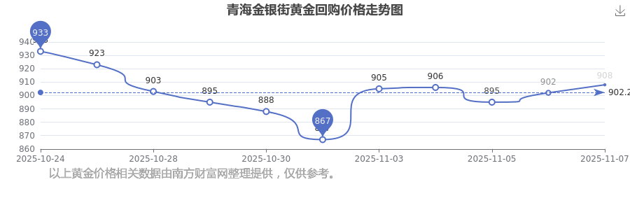 2025年11月9日這一天,青海金銀街的黃金回購(gòu)以 908.0元/克的價(jià)格售賣。