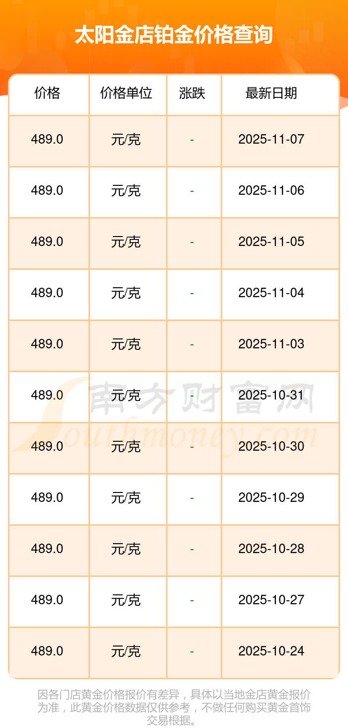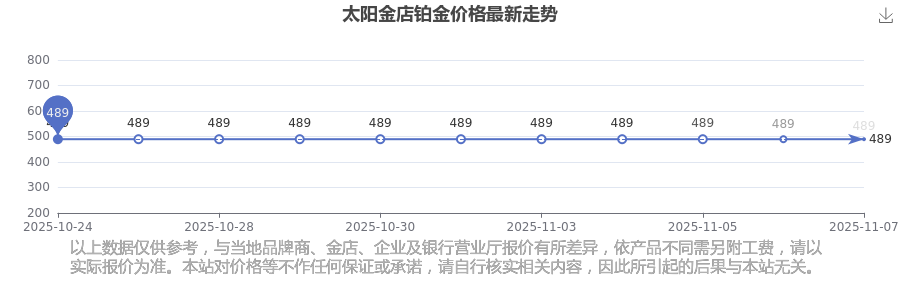 當(dāng)下,太陽金店 鉑金價格今日的最新價格是489.0元/克。
