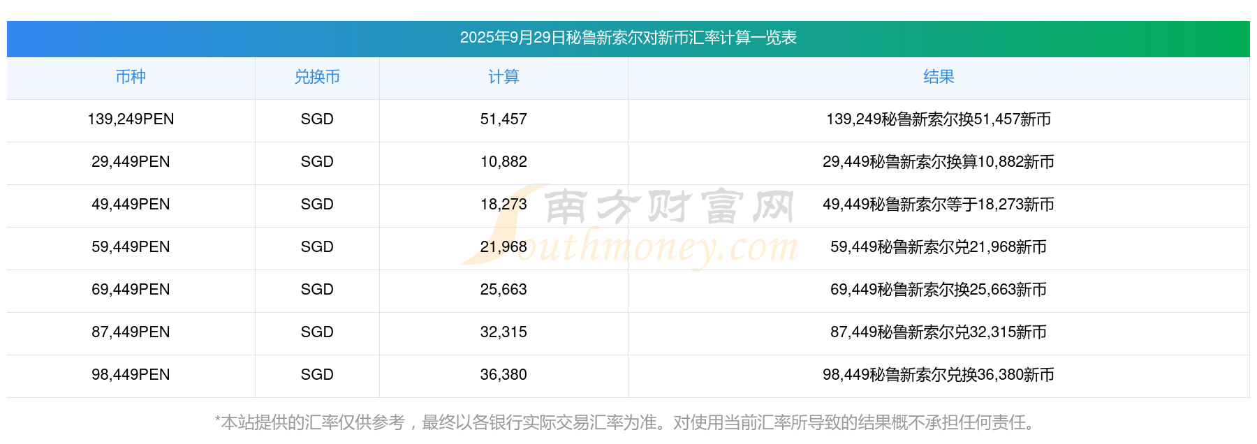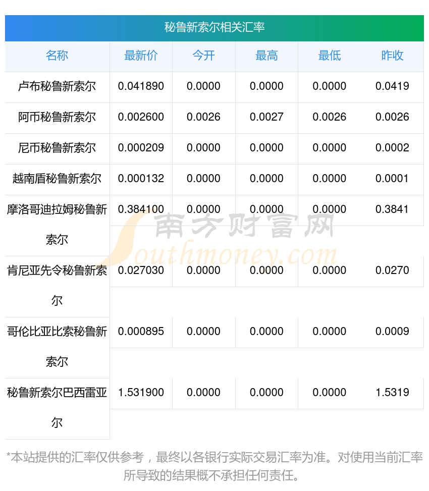 南方財富網(wǎng)為您提供秘魯新索爾對新幣匯率最新價格詳情。