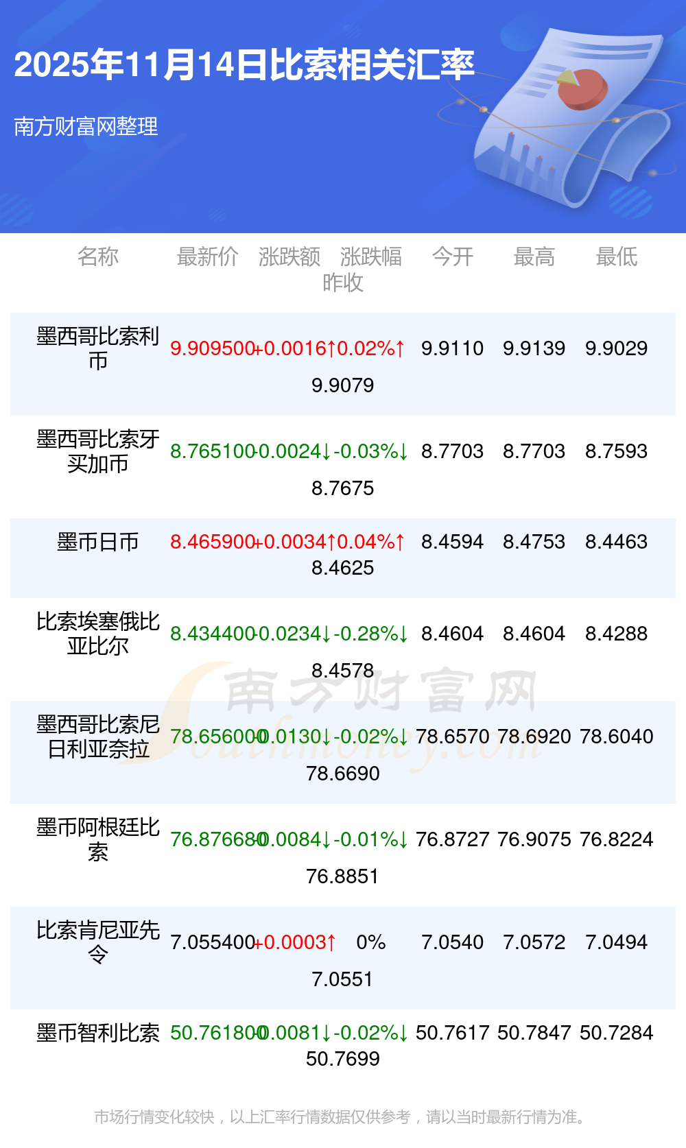根據(jù)2025年11月14日匯率計算,MXN兌換KES匯率最新價7.055400,今開價7.0540,昨收價7.0551,最高價7.0572,最低價7.0494。