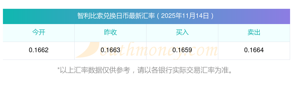 2025年11月14日智利比索兌換日幣匯率是:0.1662
