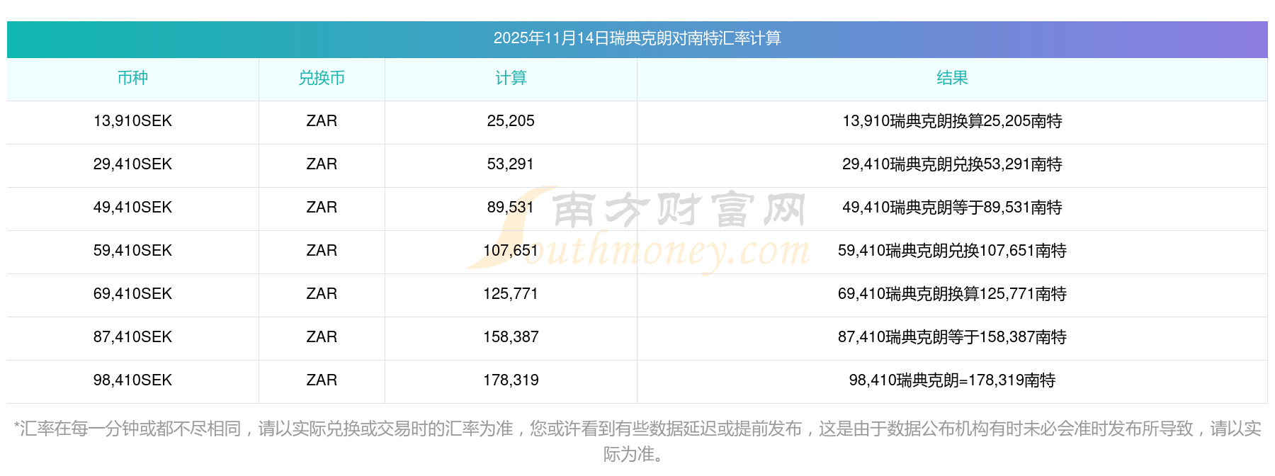 今日26瑞典克朗兌換南特匯率查詢多少? 2025-11-14