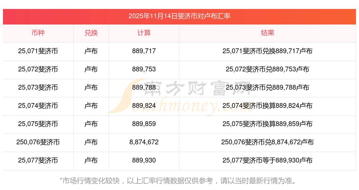 匯率新調(diào)整 14斐濟幣兌換盧布匯率行情? 2025/11/14