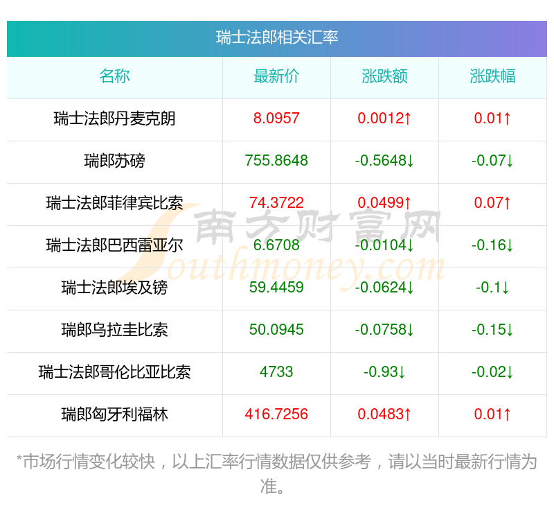 2025年11月15日瑞士法郎相關(guān)匯率查詢