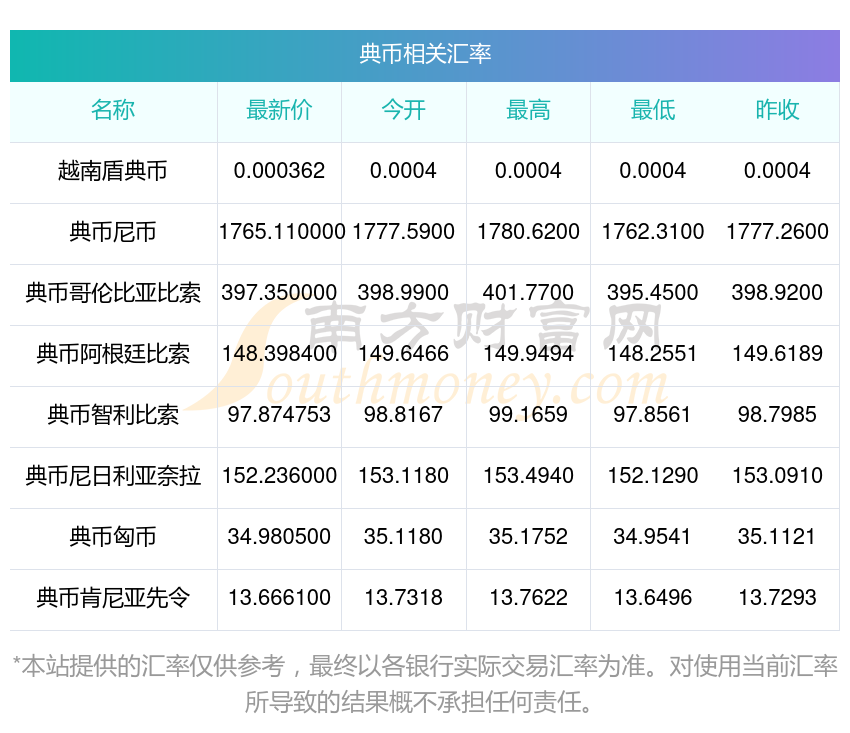 南方財富網(wǎng)為您提供典幣對斐濟(jì)刀匯率最新價格詳情。