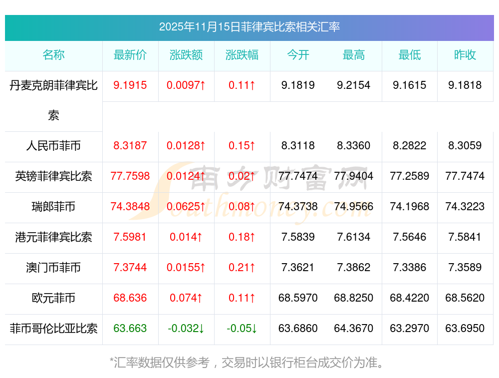 2025年11月15日菲律賓比索相關(guān)匯率查詢(xún)