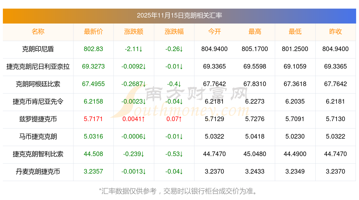 2025年11月15日克朗相關(guān)匯率查詢(xún)