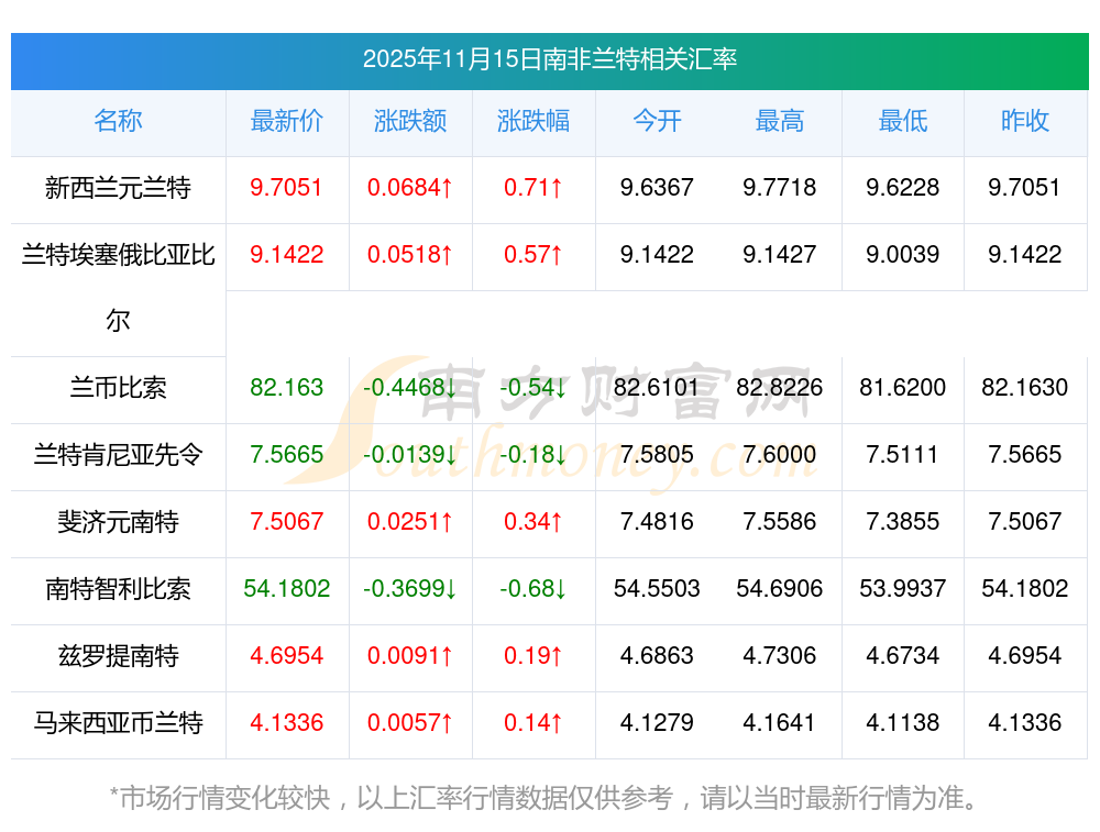 2025年11月15日南非蘭特相關(guān)匯率查詢
