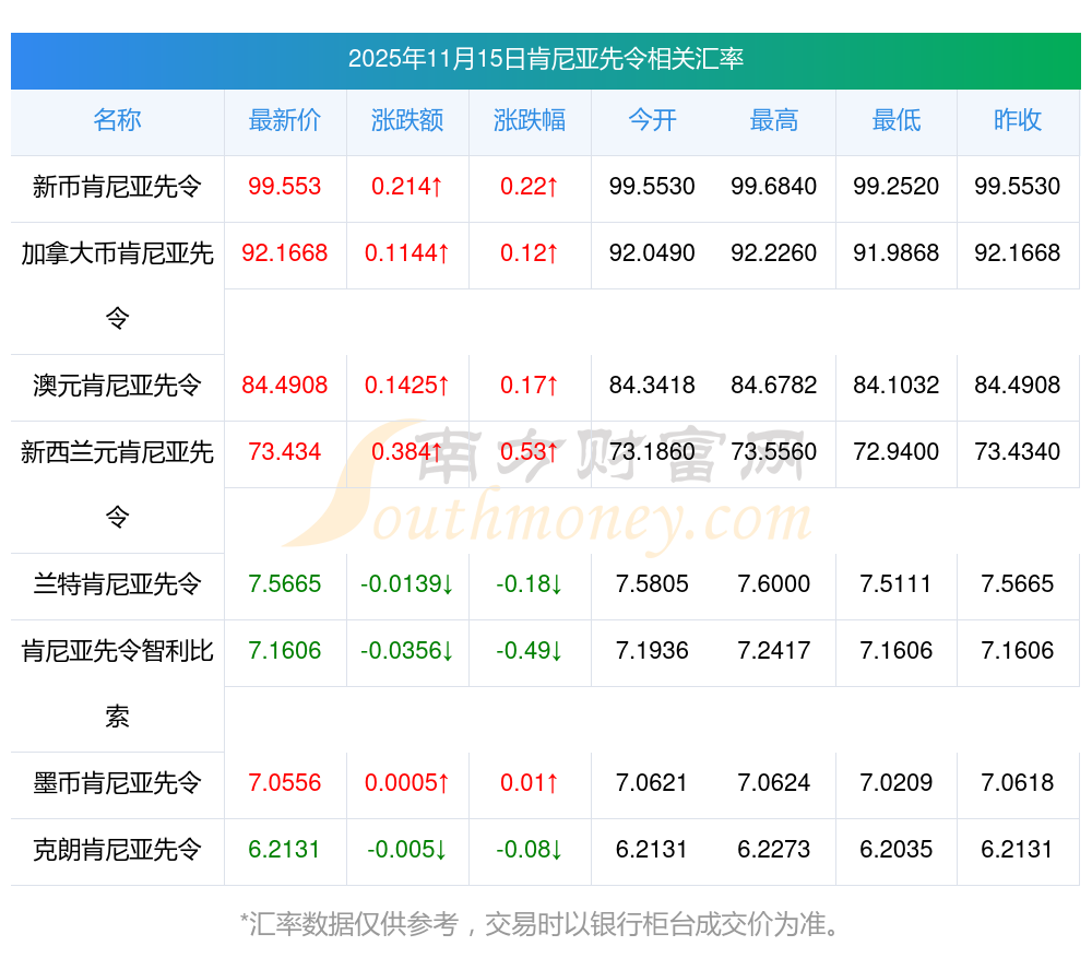 2025年11月15日肯尼亞先令相關(guān)匯率查詢