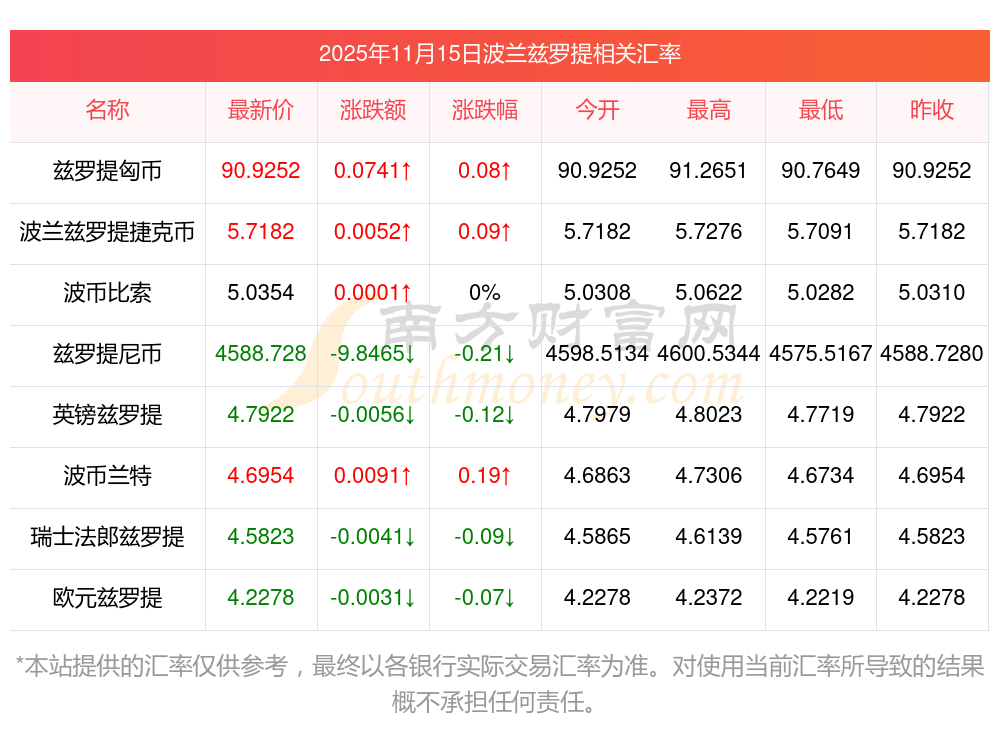 2025年11月15日波蘭茲羅提相關匯率查詢