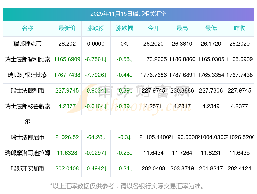 2025年11月15日瑞郎相關(guān)匯率查詢