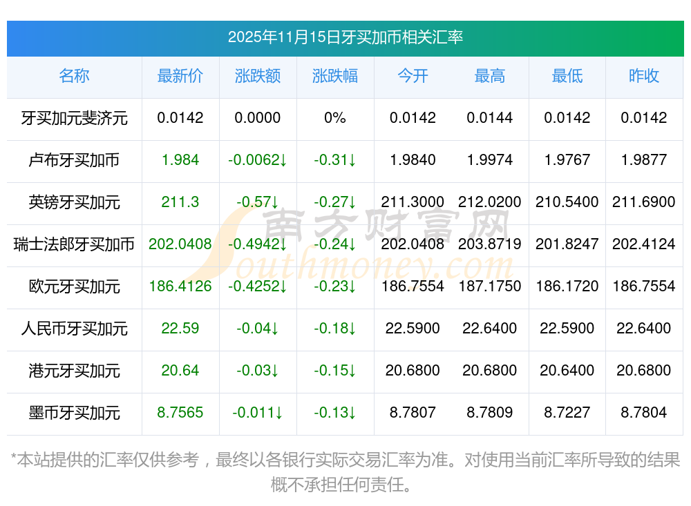 市場行情變化較快,以上匯率行情數(shù)據(jù)僅供參考,請以當(dāng)時最新行情為準(zhǔn)。