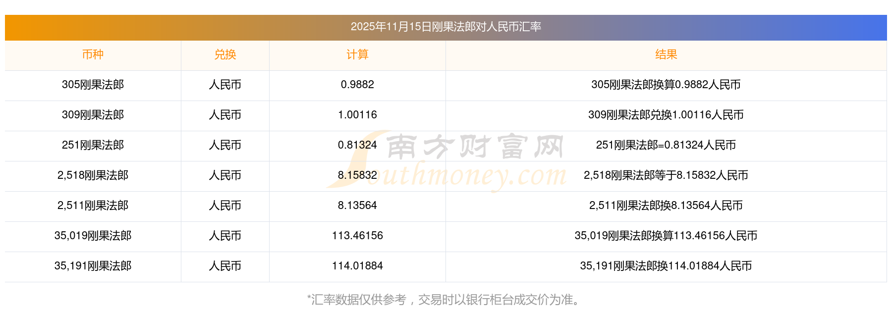 1 兌換為 | 將剛果法郎轉(zhuǎn)換為人民幣計(jì)算多少? 2025-11-15