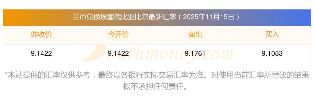 今日90蘭幣兌換埃塞俄比亞比爾多少2025/11/15 埃塞俄比亞比爾外匯行情